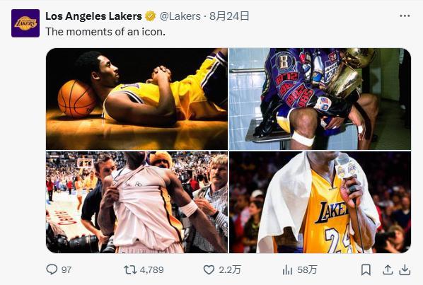 永远的紫金传奇!湖人官方连发15条推文庆祝科比生日&曼巴日!